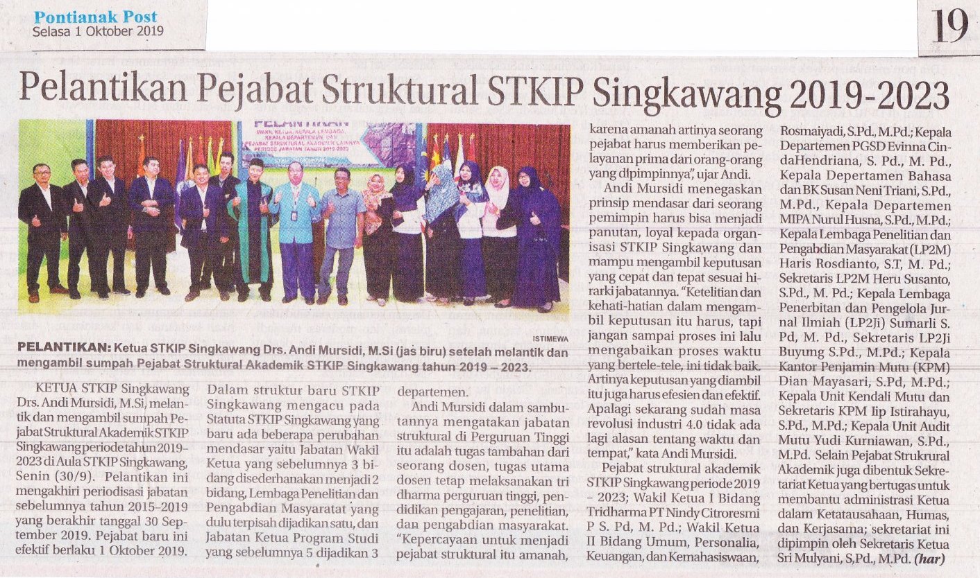 Pelantikan Pejabat Struktural STKIP Singkawang 2019-2023