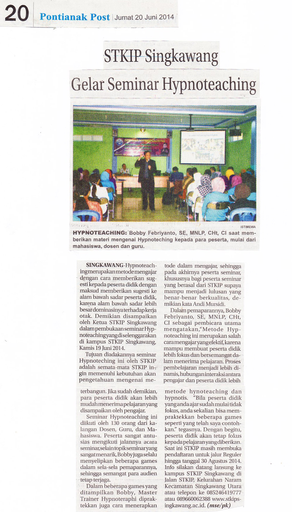 STKIP Singkawang Gelar Seminar Hynoteaching